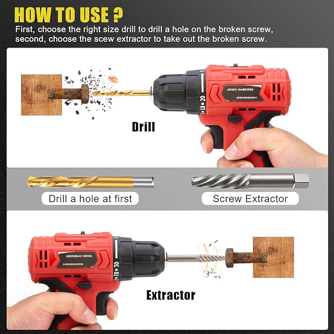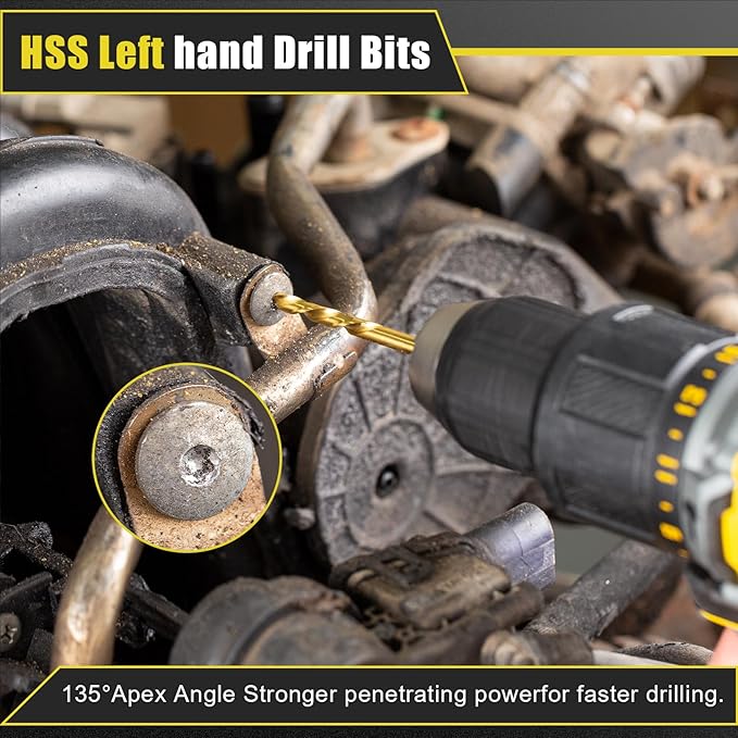 - Premium Materials: Crafted from high-quality chromium molybdenum steel (CR-MO), our screw extractors and left hand drill bits offer exceptional durability and strength. This ensures reliable performance during even the toughest extraction jobs, providing long-lasting value.