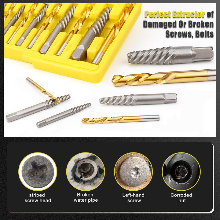 - Versatile Applications: Our set is designed to make the process of removing stripped, broken, or damaged screws, bolts, and fasteners hassle-free. Whether you're a professional tradesperson or a DIY enthusiast, this set equips you with the essential tools needed to dismantle a variety of stubborn components.