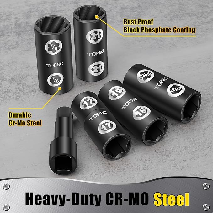 - 【Spiral Twisted End】The internal spiral threads of the twisted end provide excellent gripping power. Its sharp edge design securely bites and easily removes stripped lug nuts or rounded bolts, saving you time and effort.