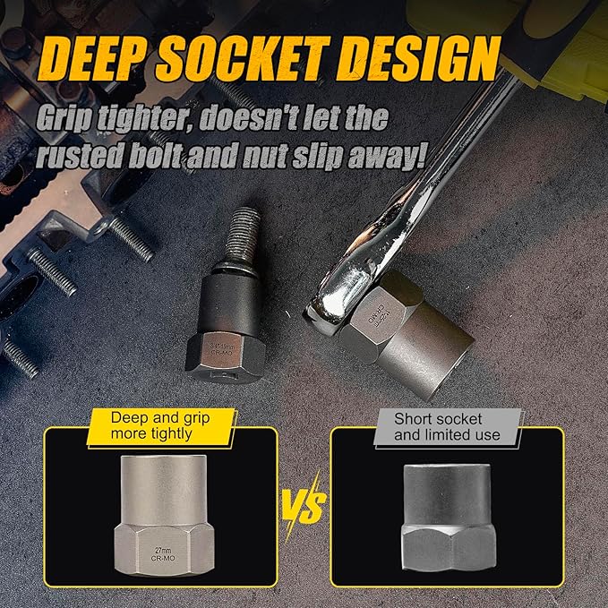 - Tool Compatibility: Designed to seamlessly work with impact wrenches, ratchet wrenches, and a variety of power and hand tools, providing ease in utilizing this stripped bolt remover set efficiently.