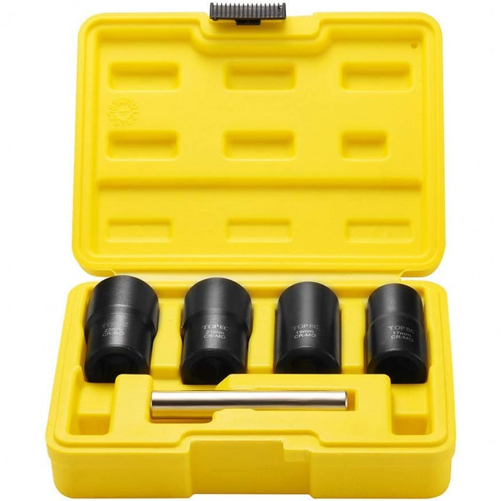 Topec 5Pcs Twist Socket Set Lug Nut Remover and Bolt & Lug Nut Extractor-T8003